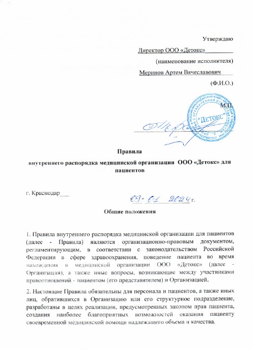 Юридические документы наркологической клиники «Детокс»: